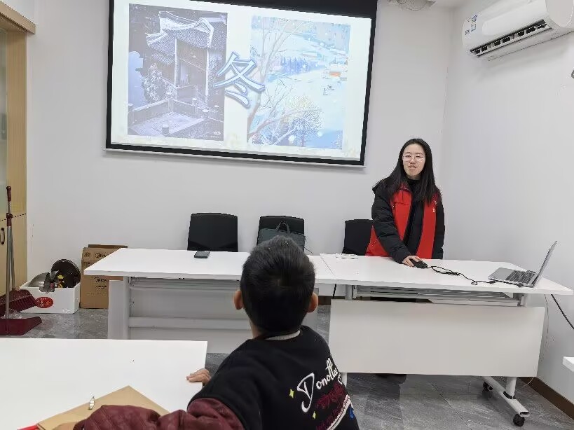 在國(guó)學(xué)課堂上,實(shí)踐成員以《三字經(jīng)》為切入點(diǎn),通過圖片、視頻和朗讀的結(jié)合,帶領(lǐng)孩子們了解“春夏秋冬”的自然規(guī)律及其在傳統(tǒng)文化中的象征意義。通過對(duì)四季輪回的講解,孩子們不僅學(xué)到了自然知識(shí),還體會(huì)到中華文化中對(duì)時(shí)節(jié)變化的獨(dú)特理解。