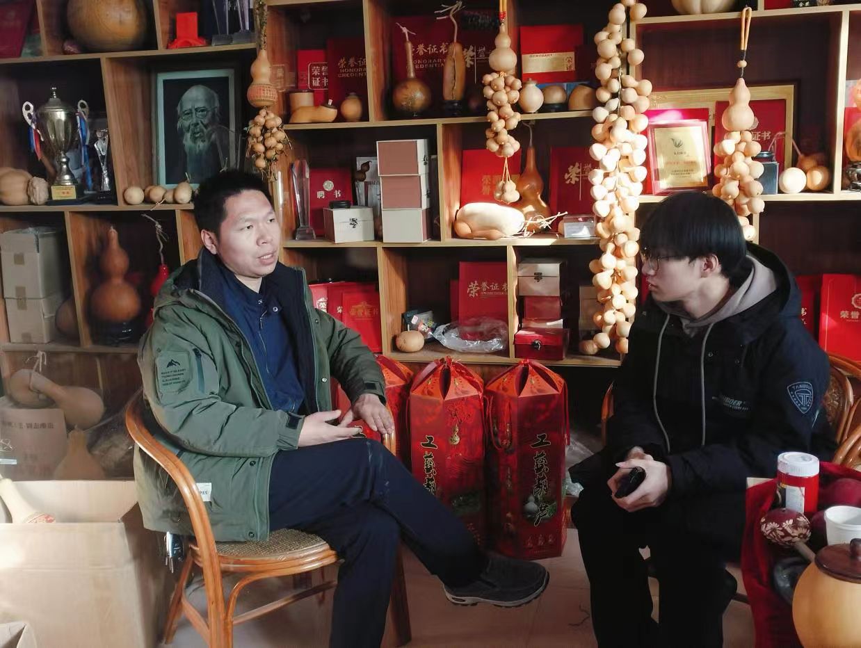 為使同學們切身領(lǐng)略到傳統(tǒng)技藝魅力,引發(fā)大學生群體對非遺保護傳承的深度關(guān)注。2025 年 1 月 9 日至 10 日,2023 級 2 班逸瓠匠心團于聊城市東昌府區(qū),開啟一場雕刻葫蘆非遺技藝的探尋之旅,并對省級傳承人王樹峰進行專訪。