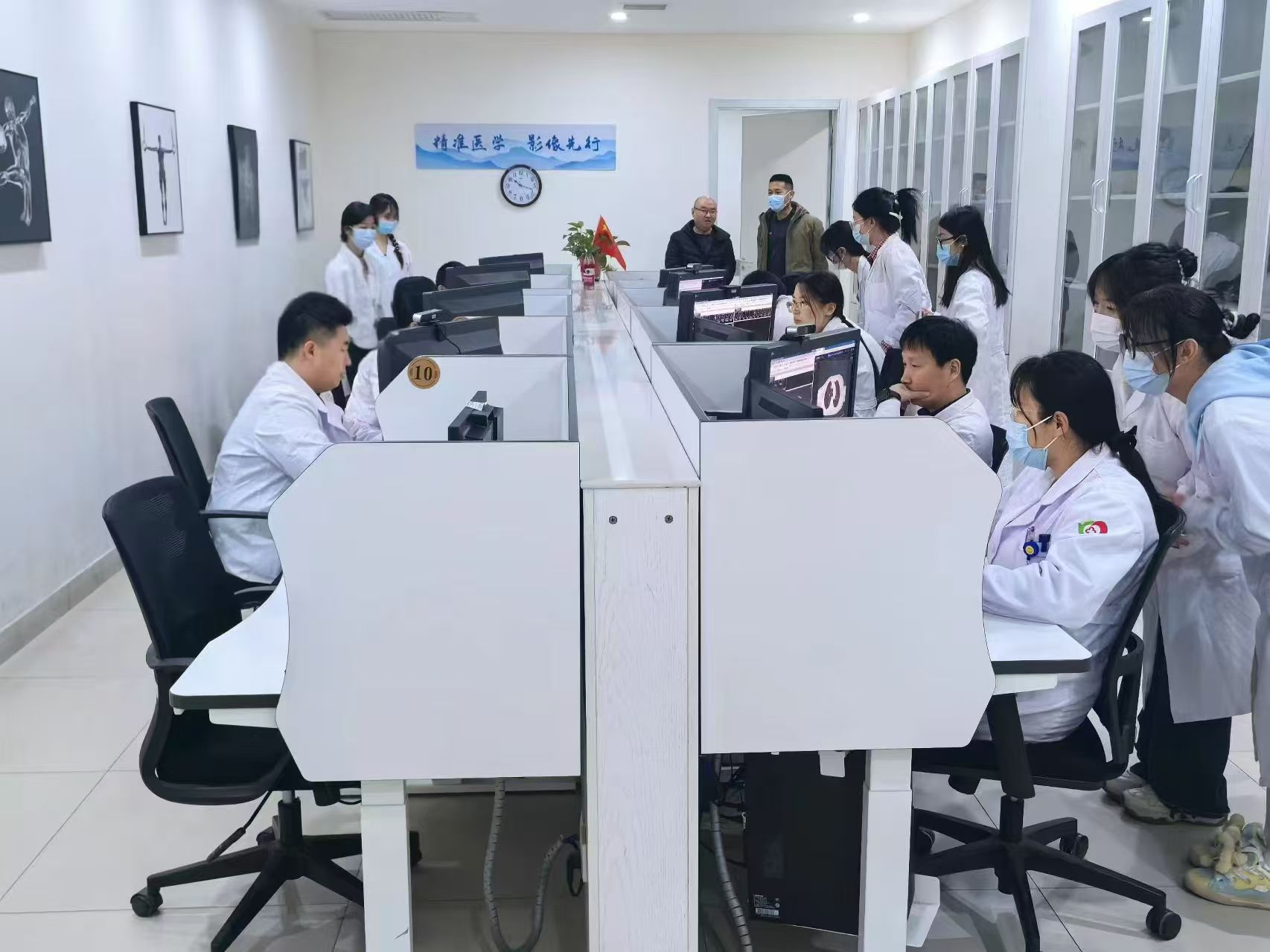 精準醫(yī)學,影像先行;顒赢斕,同學們早早抵達人民醫(yī)院醫(yī)學影像科,孫宗博和孫曉楠帶領(lǐng)同學們系統(tǒng)地參觀了醫(yī)學影像科,對各影像設(shè)備進行了詳細的介紹,使同學們對其使用方法及注意事項有了初步的了解。通過參觀集中閱片室,同學們與各位老師的密切交流,了解影像處理的原理及人工智能在處理影像數(shù)據(jù)時的應用。