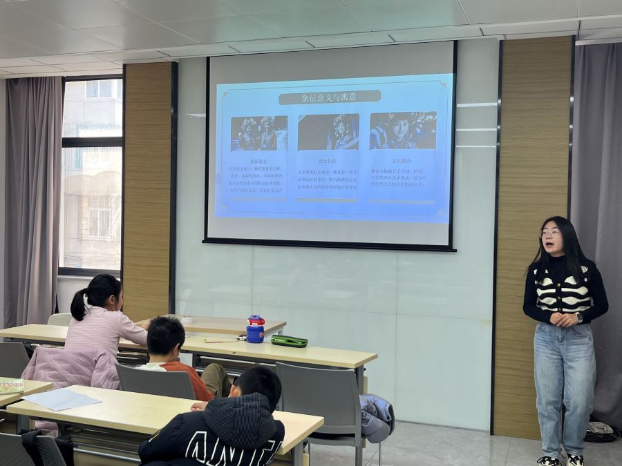 活動(dòng)推進(jìn)至第二階段,借助PPT的動(dòng)態(tài)展示,孩子們仿若穿越時(shí)空,踏入古色古香的“文化傳承館”。當(dāng)屏幕中出現(xiàn)頭戴傳統(tǒng)“四季花簪”、氣質(zhì)溫婉的簪花技藝省級(jí)傳承人李女士時(shí),孩子們的目光瞬間被其發(fā)間微微顫動(dòng)、精美絕倫的絨花牢牢吸引。盧悅手持飽經(jīng)歲月滄桑、擁有百年歷史的檀木花模,為孩子們抽絲剝繭般詳細(xì)講解:“這朵雍容華貴的牡丹,是由蠶絲一絲一縷精心捻制而成,從最初的原料篩選、細(xì)致的染色加工,到最終完美成型,整整歷經(jīng)三十道繁雜工序。”孩子們由此得以一窺非遺技藝的精湛絕倫與深厚底蘊(yùn)。