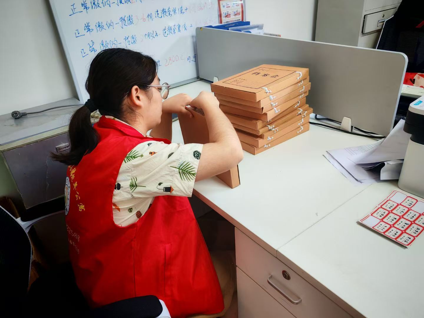 圖為辦公室志愿者幫忙整理檔案。通訊員趙祎婷供圖