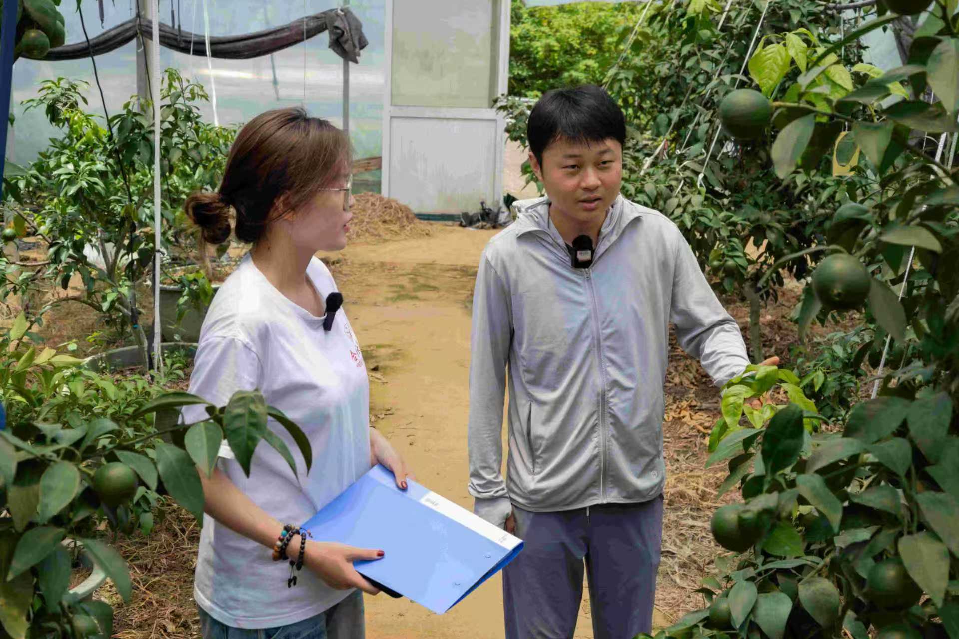 在梁崗村特色種植基地,團隊實地調(diào)研了采用大棚栽培、物聯(lián)網(wǎng)技術(shù)精細化管理的紅美人柑橘,以及仿野生環(huán)境種植的鐵皮石斛。隊員們詳細了解了品種特性、技術(shù)應(yīng)用及市場情況,并進行專業(yè)影像記錄。