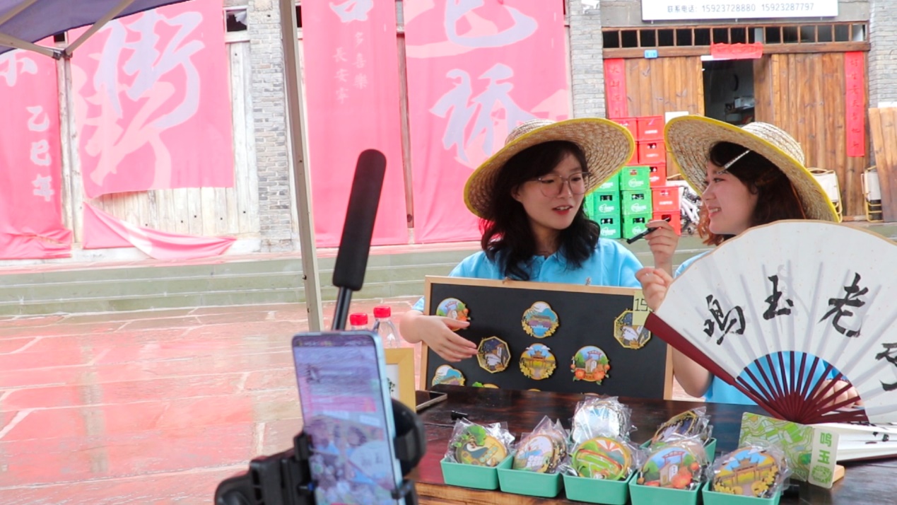 團(tuán)隊(duì)充分發(fā)揮新媒體營銷優(yōu)勢(shì),志愿者們?cè)诙兑羝脚_(tái)開設(shè)了專場直播,熱情介紹鳴玉鎮(zhèn)獨(dú)具特色的文創(chuàng)產(chǎn)品。直播過程中,志愿者們通過鏡頭展示與互動(dòng)講解向大家全方位展現(xiàn)了賦有鳴玉鎮(zhèn)文化特色的文創(chuàng)產(chǎn)品,觀看直播的觀眾也紛紛響應(yīng),熱情下單。這場直播有效擴(kuò)大了鳴玉文創(chuàng)的知名度和影響力,成功促進(jìn)了鄉(xiāng)村文化的傳播,為當(dāng)?shù)靥厣a(chǎn)業(yè)開辟了廣闊的線上市場空間。