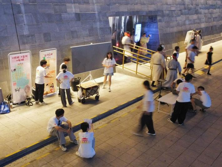 活動(dòng)于當(dāng)晚10時(shí)落幕。站在象征盛唐氣象的應(yīng)天門遺址前,親身參與這場文化傳播的實(shí)踐隊(duì)員們感觸尤為深刻。他們表示:“這不僅是一次暑期社會(huì)實(shí)踐任務(wù),更是一次沉浸式的文化洗禮與深刻的責(zé)任體悟。從物料籌備到現(xiàn)場講解的每一個(gè)環(huán)節(jié)雖然繁雜,但在看到游客因理解而露出的笑容時(shí)的欣慰,聽到孩子們搶答時(shí)清脆童聲時(shí)的喜悅,以及線上互動(dòng)獲得積極反饋時(shí)的鼓舞,每一個(gè)瞬間都凝聚著我們對腳下這片古老土地的熱愛和對中華文明綿延不絕的敬仰。”親手制作的瓦當(dāng)印章火漆印,“長樂未央”“五五大吉”等吉祥字符,雖是小物,卻寄托著青年學(xué)子用創(chuàng)意活化傳統(tǒng)文化、讓千年文明“飛入尋常百姓家”的真誠嘗試。
