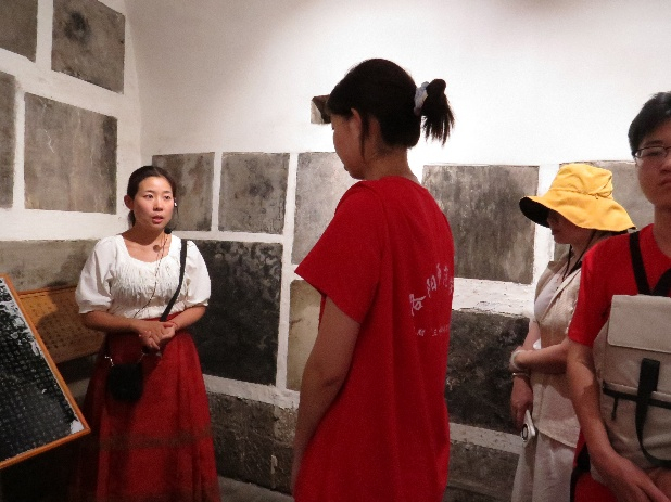 (“千唐志齋”博物館講解員張嬌嬌向大家介紹各方墓志)