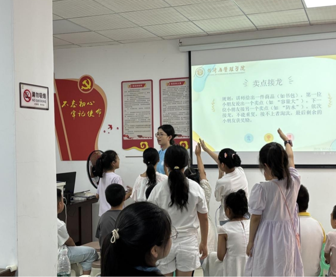 志愿者們隨后又帶領(lǐng)小朋友們體驗了“賣點接龍”“非遺技藝體驗—漆扇”“你來比劃我來猜”“擊鼓傳花”四個精彩小游戲,小朋友們積極參與了各項游戲,在激烈的比拼和設(shè)計靈感的噴發(fā)下,部分獲得大家認可的小朋友也獲得了他們喜歡的小禮品。通過這四個游戲,小朋友們不僅體驗到了傳統(tǒng)藝術(shù)之美,還鞏固了當(dāng)天學(xué)習(xí)的銷售知識,進一步深化了他們對經(jīng)濟的認識和理解。經(jīng)濟與管理學(xué)院院也將繼續(xù)學(xué)習(xí)和貫徹黨的二十大精神,讓新時代的后備軍更加的強大!