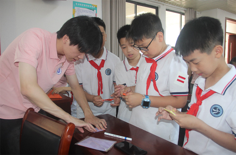 非遺漆扇制作 孩子們在志愿者的指導下,體驗傳統(tǒng)漆扇制作工藝。通過調(diào)配顏料、滴染和轉印,每位孩子都創(chuàng)作出了獨一無二的漆扇作品,感受中華傳統(tǒng)文化的魅力。