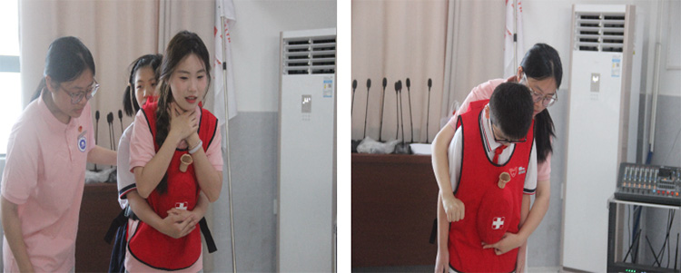 海姆立克急救法 針對常見的異物卡喉情況,志愿者們演示了海姆立克急救法的操作步驟,并指導孩子們分組練習。課程強調(diào)“剪刀、石頭、布”的口訣,幫助孩子們快速記憶急救要領。