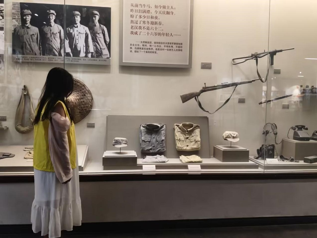 與此同時,一把銹跡斑駁的步槍同樣令人矚目。它曾是徐向前元帥開展游擊戰(zhàn)時手中的武器,雖簡陋卻承載著厚重的歷史價值。這把步槍是民眾英勇無畏、不屈不撓精神的象征,體現(xiàn)了他們面對強(qiáng)敵毫不退縮的革命氣概,映射了人民軍隊從無到有、以弱勝強(qiáng)的軍事智慧。