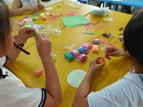 午后三點(diǎn),碎金似的陽光穿過兒童服務(wù)站的玻璃窗,在水磨石地板上織出晃動搖曳的光斑。志愿者溫老師正踮腳掛 “夏日粘土派對” 的橫幅,紅底黃字的布料剛拉平,身后就響起一片細(xì)碎的抽氣聲 —— 三十雙眼睛齊刷刷望過來,像盛滿了夏夜星光。