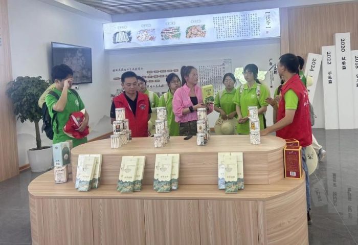 接著,基地負(fù)責(zé)人帶領(lǐng)實(shí)踐隊(duì)員們走到茯苓產(chǎn)品展示區(qū)。負(fù)責(zé)人介紹道;“公司目前正積極推進(jìn)茯苓酥、茯苓面、茯苓酒、茯苓清口茶以及茯苓面膜等深加工產(chǎn)品的研發(fā)生產(chǎn),以延伸產(chǎn)業(yè)鏈、提升產(chǎn)品附加值。”實(shí)踐隊(duì)員現(xiàn)場(chǎng)品嘗了茯苓酥,其口感酥脆清香,溫和適口。