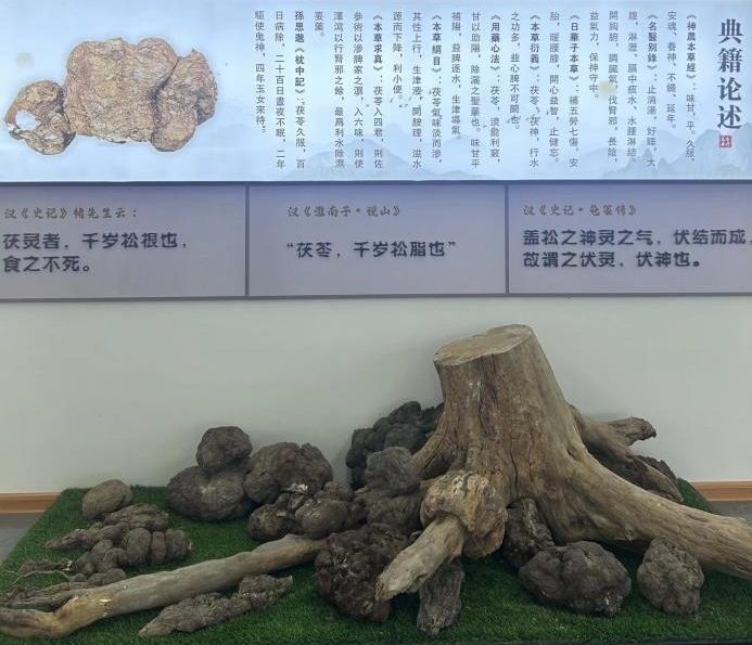 展廳內(nèi)擺放著各種茯苓初加工產(chǎn)品,如茯苓丁、茯神、茯苓卷、茯苓個(gè)、茯苓皮、赤茯苓等,基地負(fù)責(zé)人向?qū)嵺`隊(duì)員們一一介紹了它們的藥用價(jià)值。指導(dǎo)老師陳湜向?qū)嵺`隊(duì)員們介紹道,“茯苓從古至今在中醫(yī)藥領(lǐng)域應(yīng)用廣泛,不僅有‘利水滲濕、健脾寧心’的功效,現(xiàn)代研究還表明其富含多糖、三萜類化合物等活性成分,有助于增強(qiáng)免疫力、抗氧化及調(diào)節(jié)血脂。”此外,觀看茯苓傳統(tǒng)文化價(jià)值視頻讓實(shí)踐隊(duì)員們對(duì)茯苓有了更加深入的認(rèn)識(shí)和理解。