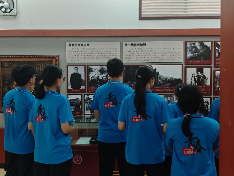 實踐團首站踏入巢湖市烔煬鎮(zhèn)的李克農(nóng)故居。夏日的陽光穿過庭院古樹,斑駁光影灑在青磚之上,仿佛為將軍的舊居披上了一層莊重的金紗。在生平事跡展陳區(qū),泛黃的書信在玻璃展柜下靜臥,無聲傳遞著烽火歲月中重于泰山的使命;洗得發(fā)白的舊軍裝,針腳細密卻難掩磨損,默默訴說著主人克己奉公的畢生堅守;那些質(zhì)樸到近乎簡陋的生活器具,無聲地還原了這位隱蔽戰(zhàn)線傳奇人物信仰支撐下的日常。