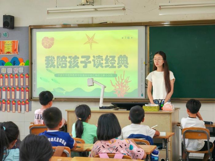 在蔚藍(lán)的東海之濱,當(dāng)清晨的陽(yáng)光灑向象山縣高塘島,高塘學(xué)校的教室里早已充盈著孩子們清脆的笑聲與熱切的求知目光。7月18日是寧波大學(xué)教師教育學(xué)院滴水行動(dòng)之海韻文耕小分隊(duì)在假日學(xué)校的第五天,四節(jié)以“海”為靈魂的課程,宛若四顆耀眼的珍珠,串聯(lián)起一場(chǎng)集科學(xué)探險(xiǎn)、文學(xué)陶冶、視覺(jué)沖擊和詩(shī)意創(chuàng)作于一身的海洋啟蒙盛會(huì)。大學(xué)生志愿者們以真誠(chéng)和智慧,為海島的孩子們開辟了一條通往蔚藍(lán)世界的神奇航道。
