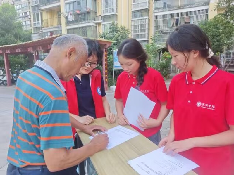 圖為志愿者們在臥牛山街道北大街社區(qū)發(fā)放調查問卷。曾悅 供圖