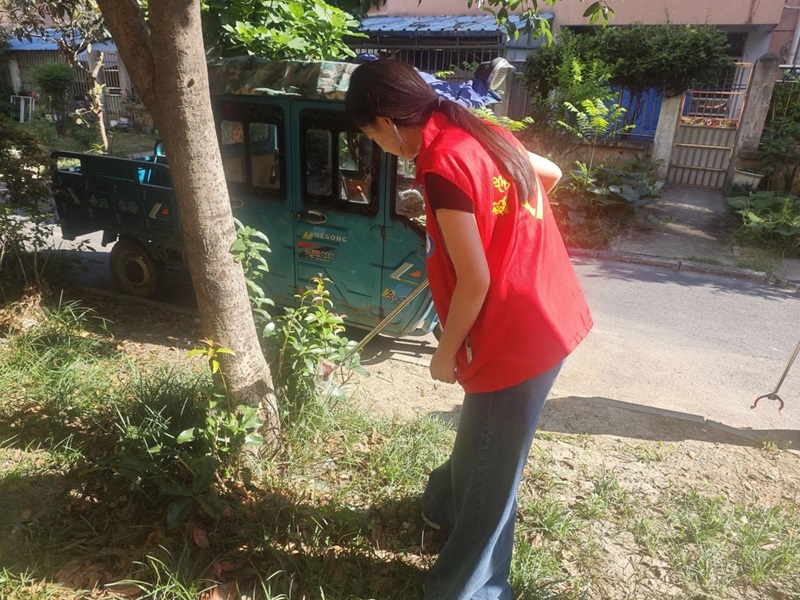 圖為團隊成員在花園社區(qū)開展清掃衛(wèi)生活動,營造健康的社區(qū)環(huán)境。阮夢婷 供圖