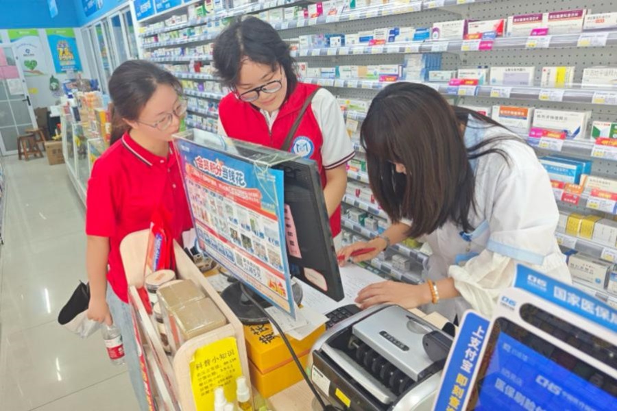 圖為團隊成員在社區(qū)藥店調(diào)研,了解藥店與無償獻血相關(guān)的藥品供應(yīng)等情況。張翔宇 供圖