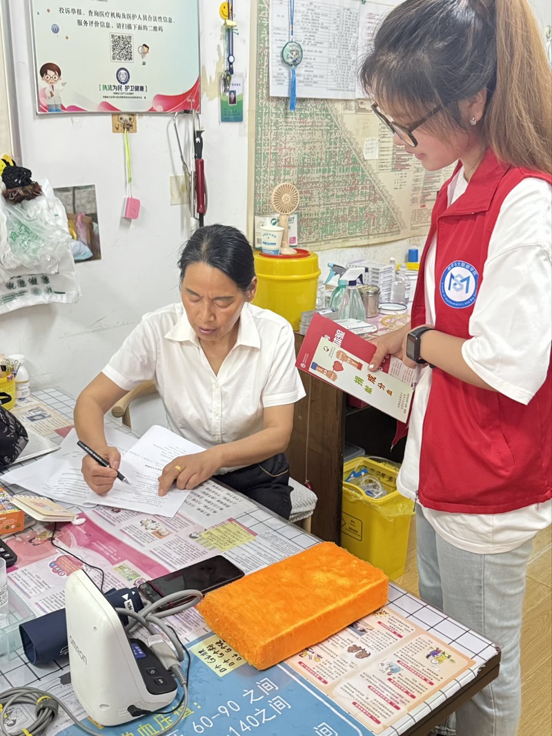 7月4日,團隊來到居民診所,志愿者們帶著問卷和印有獻血知識的宣傳手冊開展活動。有居民對著問卷上“獻血后是否需要大補”的問題犯愁,團隊成員笑著舉例:“就像平時運動后補充水分和營養(yǎng)一樣,獻血后正常飲食就能恢復(fù),不用特意‘大補’呢。醫(yī)護人員也加入進來,和志愿者們你一言我一語地聊起居民常問的“獻血會不會傳染疾病”等問題,團隊成員結(jié)合消毒流程和醫(yī)學(xué)規(guī)范詳細(xì)解答,原本安靜的角落漸漸熱鬧起來,不少候診的居民也湊過來聽,偶爾插問幾句,在輕松的交流中加深了對無償獻血的了解。