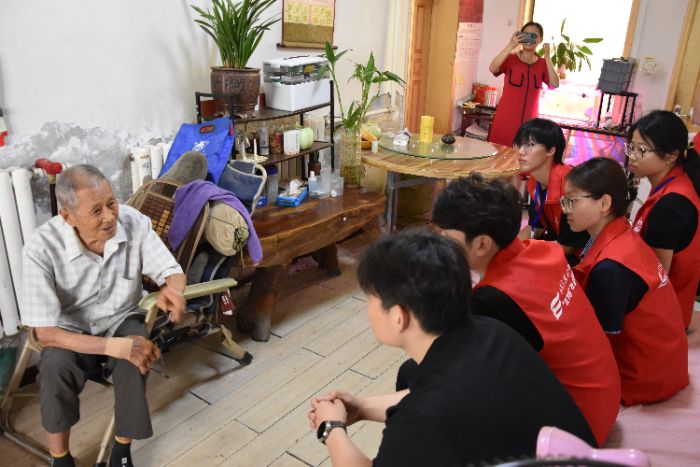 為深入宣傳紅色歷史、致敬浴血英雄,實(shí)踐團(tuán)隊(duì)先后拜訪了抗戰(zhàn)老兵章守洪老人和武之權(quán)老人。采訪現(xiàn)場,兩位老人用帶著歲月滄桑的聲音,緩緩鋪開戰(zhàn)爭的烽火畫卷。老兵的講述如同一把鑰匙,打開了那段被炮火熏染的歷史記憶。