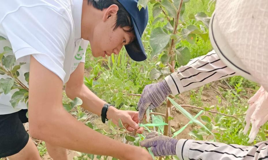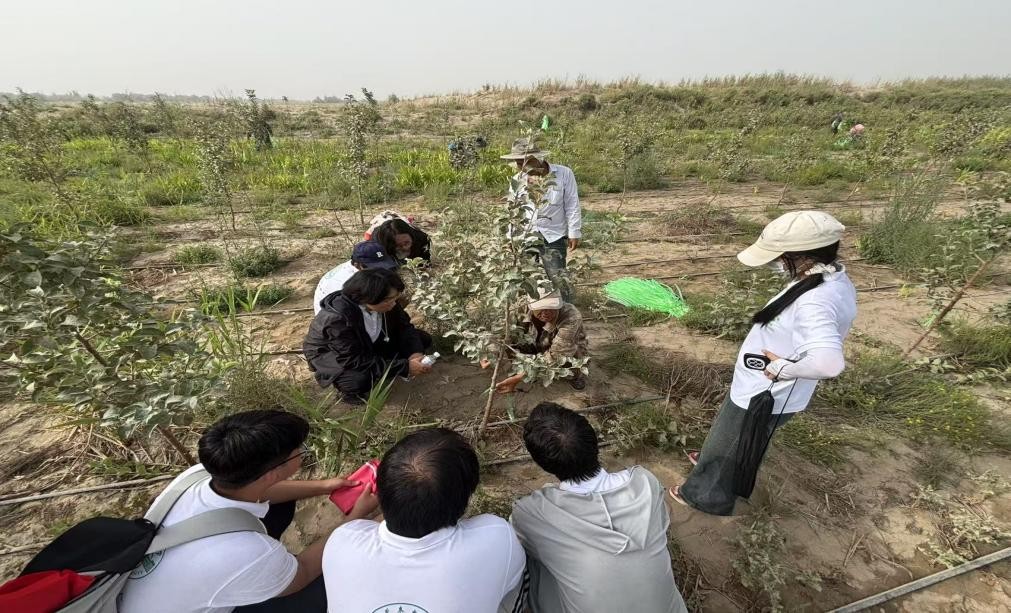 在種樹防沙、果樹修剪實踐活動中,實踐團(tuán)成員們更是熱情高漲。在企業(yè)工人管理員李軍昌老先生的耐心講解與指導(dǎo)下,大家分工協(xié)作,有的挖坑、有的扶樹、有的澆水、有的修枝,每一個環(huán)節(jié)都一絲不茍。盡管天氣炎熱,但成員們的熱情絲毫未減,他們用實際行動為當(dāng)?shù)氐姆郎持紊彻ぷ髫暙I(xiàn)著自己的一份力量。在勞動過程中,鄭總經(jīng)理還向大家講解了種樹防沙的技巧和重要性,讓成員們深刻認(rèn)識到防沙治沙對于改善當(dāng)?shù)厣鷳B(tài)環(huán)境、保障農(nóng)業(yè)生產(chǎn)的關(guān)鍵作用。