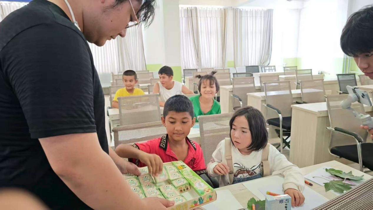 活動開始前,實踐團活動負責人高軒與南網(wǎng)社區(qū)負責人再努爾·艾麥爾進行了對接;顒赢斕欤暇W(wǎng)社區(qū)的活動室內(nèi)熱鬧非凡,孩子們早早地就來到現(xiàn)場,臉上洋溢著期待的笑容;顒悠陂g,志愿服務團隊的隊員們經(jīng)過精心準備,運用所學植物學知識,將復雜的生態(tài)知識轉(zhuǎn)化為孩子們易于理解和接受的內(nèi)容。讓孩子們深刻認識到生態(tài)平衡對人類生存和發(fā)展的重要性。