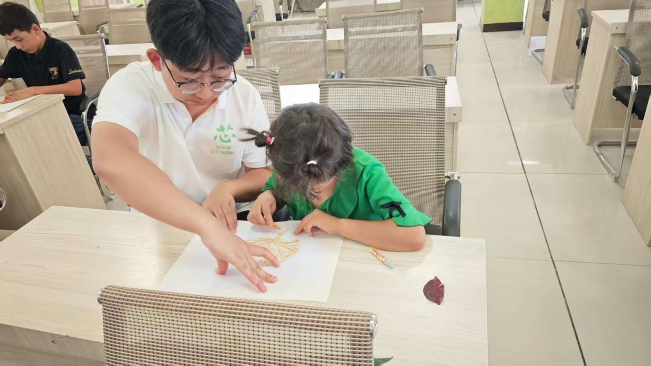 隨后,志愿者和孩子們一起開展手工樹葉拓印活動。孩子們在志愿者的指導下,充分發(fā)揮想象力和創(chuàng)造力,將一片片普通的樹葉變成了一幅幅精美的藝術作品。通過這個活動,孩子們不僅提高了動手能力,還對大自然有了更深刻的認識和熱愛。