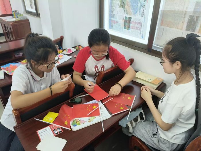 “赤旗耀朝陽(yáng),童心向祖國(guó)。”思想引領(lǐng)課堂上,實(shí)踐團(tuán)成員以國(guó)旗為引,以熱愛(ài)為墨,帶領(lǐng)孩子們回溯國(guó)旗誕生歷程,探尋五角星與紅色旗面的意義。手工制作小紅旗時(shí),孩子們認(rèn)真裁剪、粘貼,這不僅是彩紙與竹筷的組合,更是對(duì)“國(guó)旗是祖國(guó)象征”的深刻領(lǐng)悟。從認(rèn)識(shí)國(guó)旗知識(shí),到承諾守護(hù)國(guó)旗,“護(hù)旗愛(ài)旗,銘記使命”的種子悄然播撒,讓愛(ài)國(guó)情在童真眼眸里閃光,國(guó)旗映夢(mèng),信仰火種燃童心!