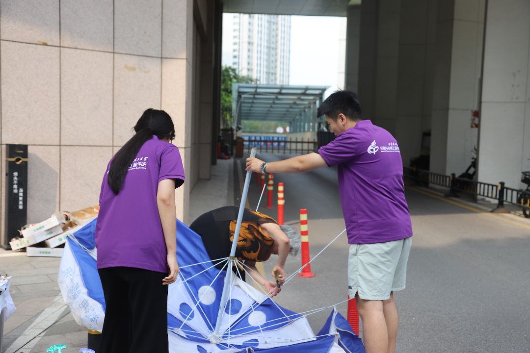 實踐團(tuán)成員抵達(dá)“黃河大集”現(xiàn)場,與社區(qū)工作人員對接當(dāng)日任務(wù)。為確保集市在開市前完成各項準(zhǔn)備工作,成員們迅速分工,按照預(yù)設(shè)方案投入布置工作。
