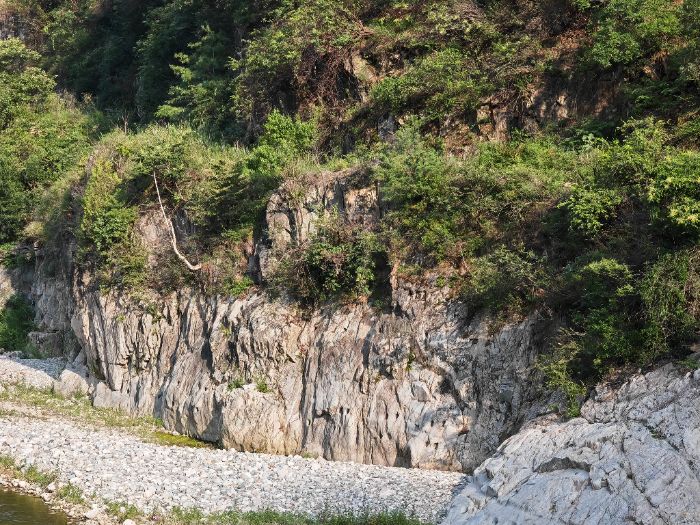乾佑河南岸棧道遺址實(shí)拍(來(lái)源:成員自攝)