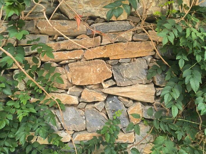 當(dāng)?shù)氐氖宸恳砸?guī)整的石條或不規(guī)則的石塊砌筑墻體,頂部覆蓋著層層疊疊的石板,青灰色的石板與山間的盎然綠意相映成趣。石板的良好隔熱性使房屋實(shí)現(xiàn)了“冬暖夏涼”的效果,而石材固有的耐久性則賦予了建筑防潮防火的特性。當(dāng)?shù)鼐用癖硎?ldquo;這些石頭都是從附近山上采的,不用走遠(yuǎn)路,省錢又結(jié)實(shí)”,工匠們將就地取材的石塊大小交錯(cuò)砌筑,縫隙間巧妙填充碎石,既節(jié)省了材料,又確保了墻體結(jié)構(gòu)的整體性與堅(jiān)固性。在驚嘆之余,隊(duì)員們?cè)敿?xì)記錄下這些石塊的砌筑肌理。