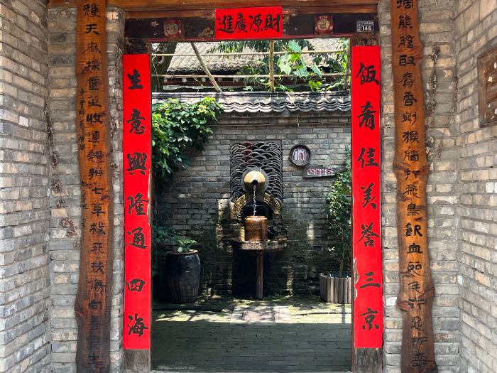 除主體建筑外,隊(duì)員們也格外關(guān)注那些蘊(yùn)含于細(xì)節(jié)中的營(yíng)造智慧。木窗的格紋樣式豐富多變,有的仿梅枝,有的似回紋,既保證了通風(fēng)采光的基本功能,又暗含吉祥寓意;大門上方的門簪造型精巧,常雕刻著花卉、瑞獸等紋樣,是屋主身份與審美情趣的體現(xiàn)。古寨在造景手法上的巧思更令隊(duì)員們贊嘆不已:廢棄的老石磨盤被串聯(lián)起來用作橋欄桿,既盤活了舊物,又透出濃厚的農(nóng)耕文化底蘊(yùn);瓦片被錯(cuò)落有致地排列成景觀墻,陽光照射下形成斑駁的光影效果;古樹樹干被匠心獨(dú)運(yùn)地改造成樓板的支撐柱,既保留了樹木的生命印記,又使建筑與自然環(huán)境渾然一體。