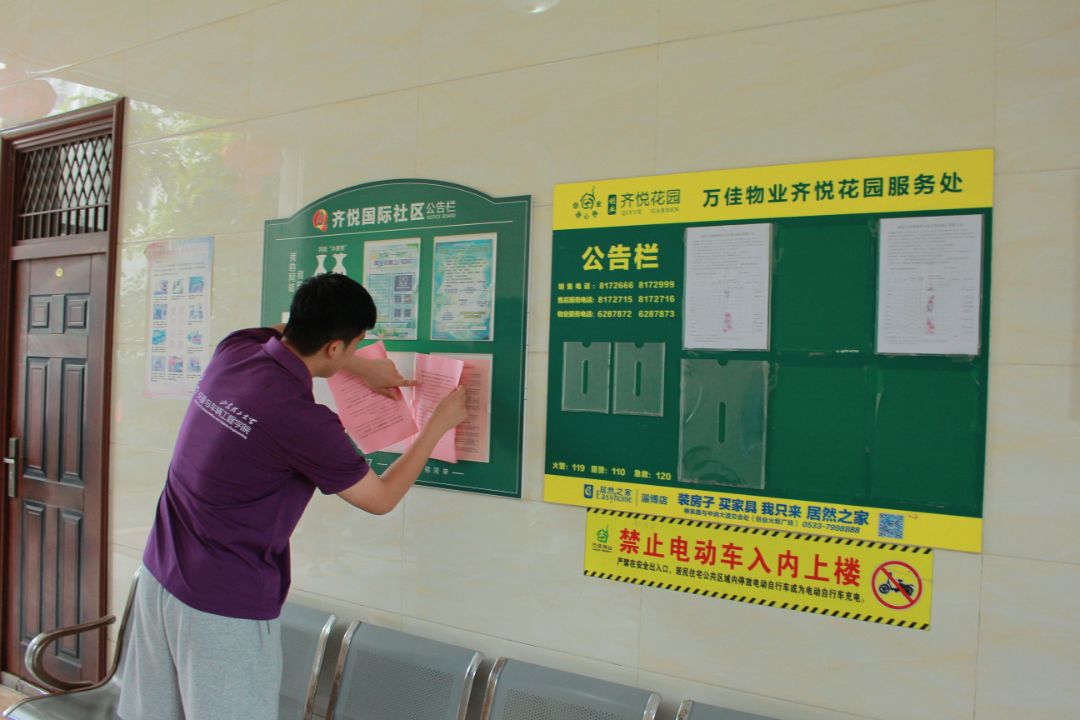 為更好地宣傳政府部門惠民政策,不斷關(guān)愛老年群體,以及促進(jìn)社會和諧穩(wěn)定,7月21日上午,“循夢而行”實踐團(tuán)繼續(xù)前往齊悅國際社區(qū),于樓道和電梯間的公告欄中幫助投放老年人意外險和高齡津貼的通知。以細(xì)微之處出發(fā),為居民的日常生活提供便利,來更好地服務(wù)民生。