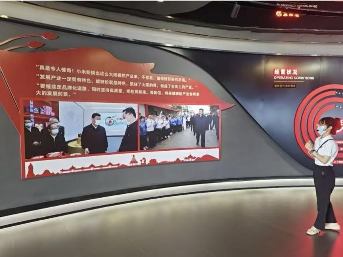 圖為接待員員介紹習(xí)總書記對(duì)螺螄粉產(chǎn)業(yè)的囑托 李凌志攝