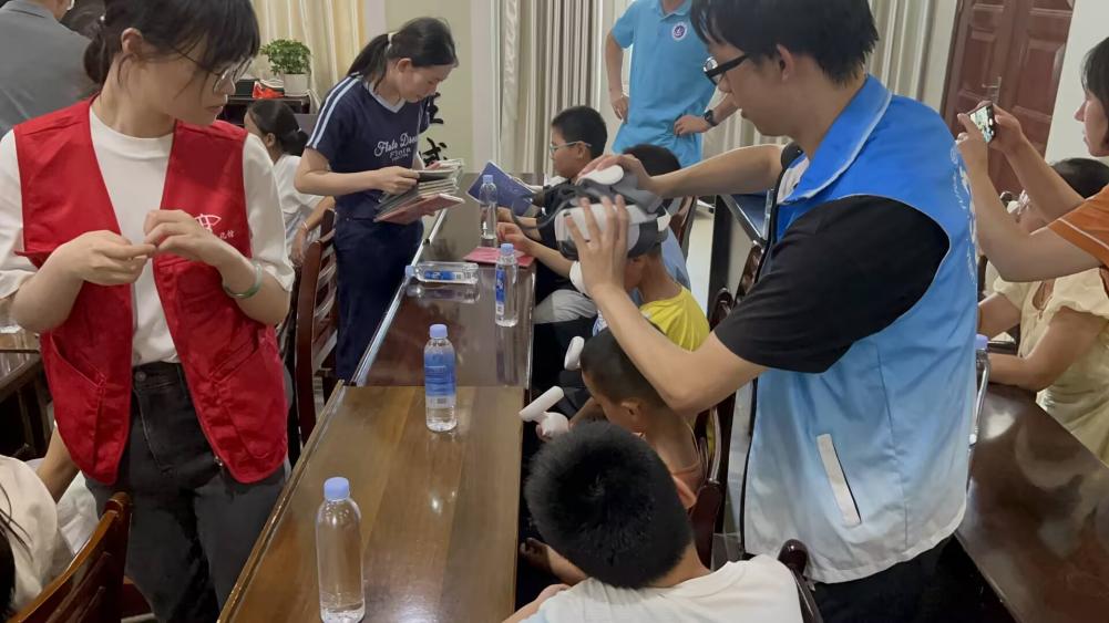 VR眼鏡體驗(yàn):科技賦能,打開世界之窗。7月24日,團(tuán)隊(duì)攜手石臺縣圖書館,將VR設(shè)備“搬”進(jìn)了丁香鎮(zhèn)。在政府的“VR體驗(yàn)區(qū)”,孩子們戴上眼鏡,“走進(jìn)”了故宮博物院、“登上”了萬里長城、“潛入”了深海世界……虛擬與現(xiàn)實(shí)的碰撞,讓從未走出過丁香鎮(zhèn)的孩子們發(fā)出陣陣驚嘆。