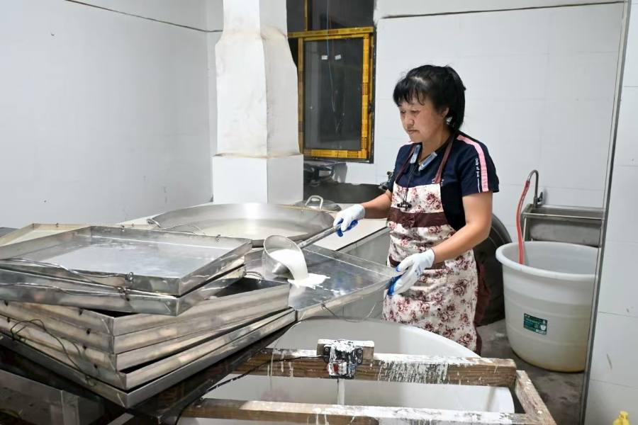 這門(mén)手藝對(duì)原料的講究,藏在作坊外的八十畝紅薯地里。從栽種到收獲,張姐和丈夫日日巡查、拔草修根,“紅薯好,粉才好,這是根本。”正是這份較真,讓他們?cè)谑≈袕?fù)盤(pán)出更精細(xì)的工藝,也讓苕粉始終保持著高端品質(zhì)。如今,張姐不僅自己堅(jiān)守,更樂(lè)意教年輕人,“手藝得共享,才能活起來(lái)。”