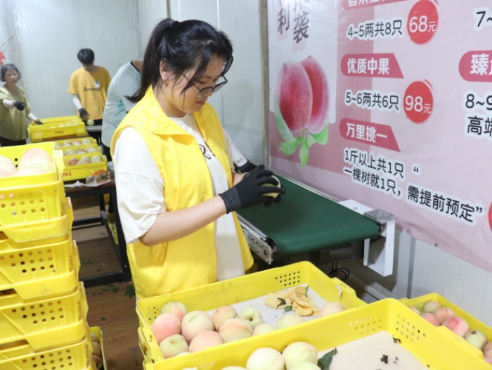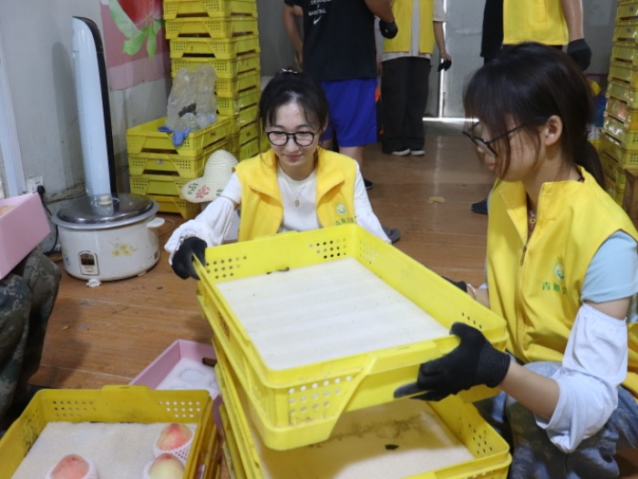 實踐團隊成員與桃園負(fù)責(zé)人及當(dāng)?shù)毓r(nóng)進行深入交流,調(diào)研水蜜桃等特色農(nóng)產(chǎn)品的情況。“桃氣十足”桃子種植基地位于江寧區(qū)徐慕村,占地200余畝,以陽山水蜜桃等優(yōu)質(zhì)品種為主,堅持多品種、有機化種植,專業(yè)果農(nóng)精心管理,年產(chǎn)量達(dá)20萬袋,產(chǎn)品主要銷往無錫等地區(qū)。果園深化與當(dāng)?shù)剞r(nóng)村合作,加入農(nóng)村種植合作社,有效帶動了農(nóng)民增收與區(qū)域經(jīng)濟發(fā)展。