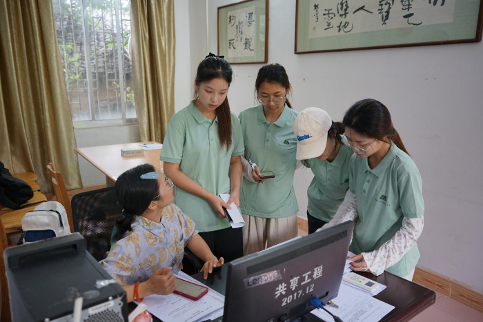 圖為實踐團隊向聯(lián)通駐村負(fù)責(zé)人展示實踐成果