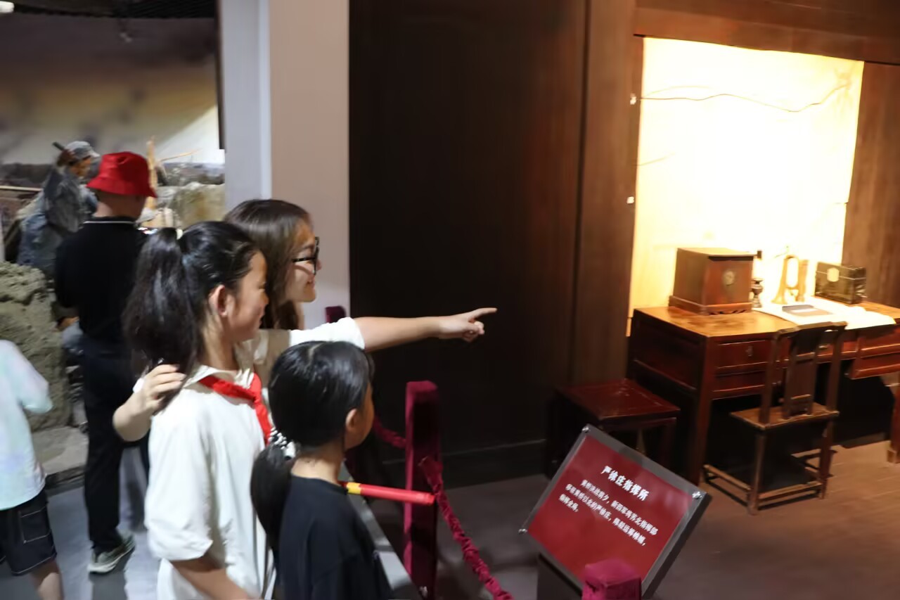 讓紅色歷史變得可知可感,助力紅色基因融入童心。7月29日至30日,“烽火黃橋,赤心傳薪”三下鄉(xiāng)實踐團隊宣傳組特別策劃紅色研學活動,帶領當?shù)?20 余名小學生走進新四軍黃橋戰(zhàn)役紀念館。志愿者們提前備好講解素材,化身 “紅領巾講解員”,著重為孩子們講述銹跡步槍、補丁軍裝等文物背后的戰(zhàn)斗故事,用生動語言還原百姓支前場景。孩子們瞪大雙眼認真聆聽,指著泛黃的作戰(zhàn)地圖追問細節(jié),不時舉手提問 “戰(zhàn)士們吃什么”“燒餅怎么送到前線”,互動熱烈。參觀結(jié)束后,大家在紀念館主題雕塑前整齊列隊,進行合影留念。
