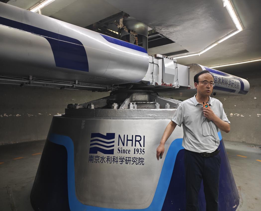 南京水利科學研究院中,研究院開放通航試驗廳與土工離心機試驗廳等重要科研場所,安排資深科研人員為實踐團講解。在通航試驗廳,科研人員圍繞三峽大壩模型、水利驅動式垂直升船機模型,深入剖析泄洪效能優(yōu)化、流體控制原理等知識,并引導實踐團思考其與污水處理技術的關聯(lián),拓寬成員們的跨領域思維。在土工離心機試驗廳,細致闡述模擬高重力場研究土層特性的技術原理,以及在污染物遷移規(guī)律研究中的應用,毫無保留地分享科研成果與經(jīng)驗。