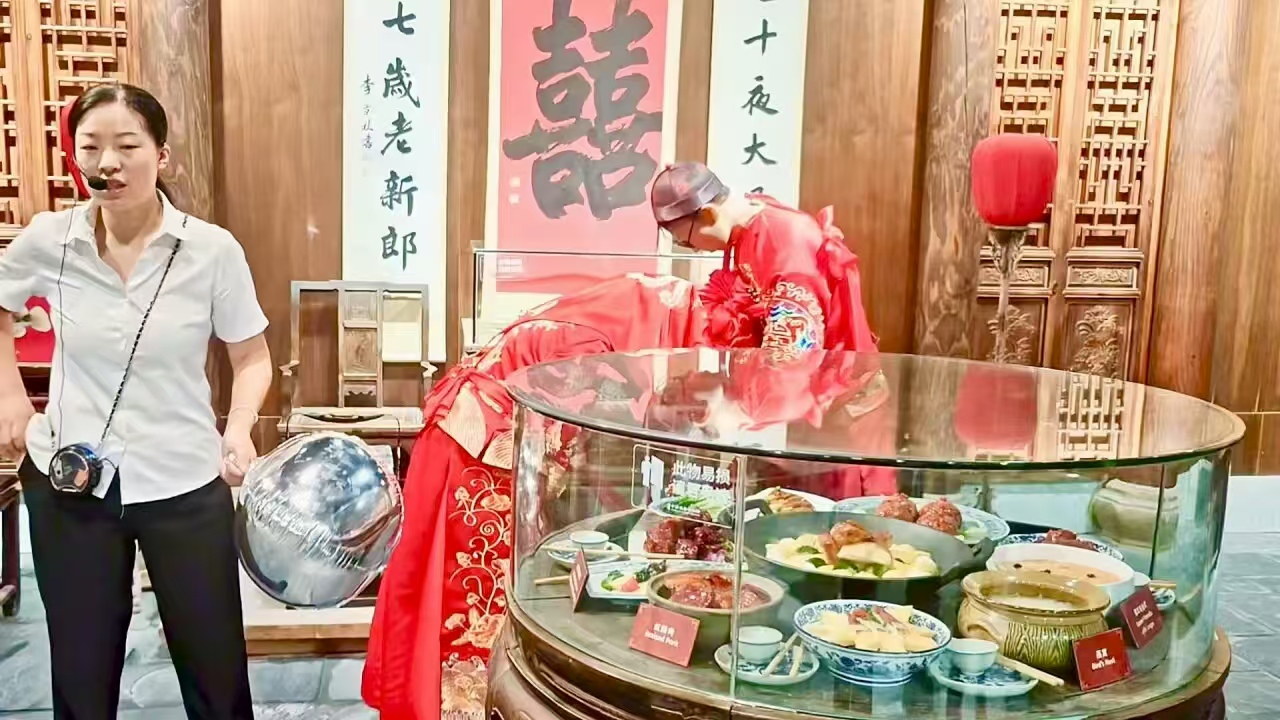 實(shí)踐團(tuán)先后赴徽州糕餅博物館與徽菜博物館開展飲食文化考察。在糕餅博物館,團(tuán)隊(duì)系統(tǒng)學(xué)習(xí)徽州糕餅發(fā)展脈絡(luò),通過現(xiàn)代工藝與古法技術(shù)融合的展陳,理解了傳統(tǒng)食品產(chǎn)業(yè)化路徑;于徽菜博物館,實(shí)踐團(tuán)成員沉浸式研究清末民初徽州茶館文化形態(tài),重點(diǎn)考察了非遺飲食展區(qū),其中徽州豆干的制作技藝及臭鱖魚發(fā)酵工藝特征成為實(shí)踐團(tuán)成員重點(diǎn)調(diào)研對(duì)象。此次考察深化了實(shí)踐團(tuán)成員對(duì)徽州飲食文化保護(hù)與創(chuàng)新實(shí)踐的認(rèn)識(shí)。