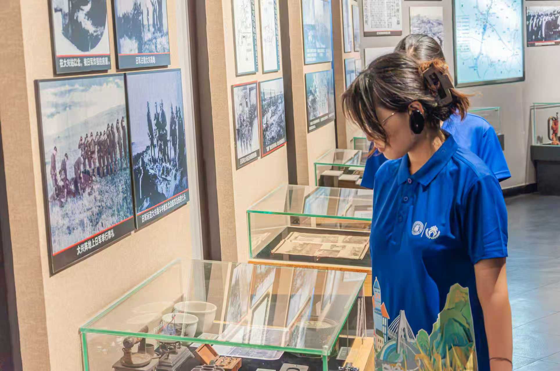 為進一步了解齊齊哈爾市深厚的紅色文化底蘊,團隊成員前往齊齊哈爾市江橋抗戰(zhàn)紀念館開展深入學習在當?shù)乩蠋煹膸ьI(lǐng)下,團隊成員用過參觀“東北危局”、“抗戰(zhàn)首槍”、“孤軍奮戰(zhàn)”等6個展區(qū)走進了那段悲壯英勇的歷史。展館內(nèi)陳列了近百余件江橋抗戰(zhàn)將領(lǐng)使用過的實物、侵華日軍的物證和大量珍貴圖片。躺在玻璃展柜中的件件文物、講解耳機中的機械音,向團隊成員訴說著那段悲壯的歷史。在參觀過程中,成員們仿佛置身于那個戰(zhàn)火紛飛的年代,與革命先輩們進行了一場跨越時空的對話。他們真切地領(lǐng)悟到了革命先輩們?yōu)榱藝要毩ⅰ⒚褡褰夥,不惜拋頭顱灑熱血的奮斗精神,也更加堅定了他們傳承紅色精神的決心。柯同學表示:“看到這些珍貴的文物和歷史資料,我深受感動,先輩們用生命為我們換來的和平,我們一定要加倍珍惜,要將他們的精神傳承下去。”