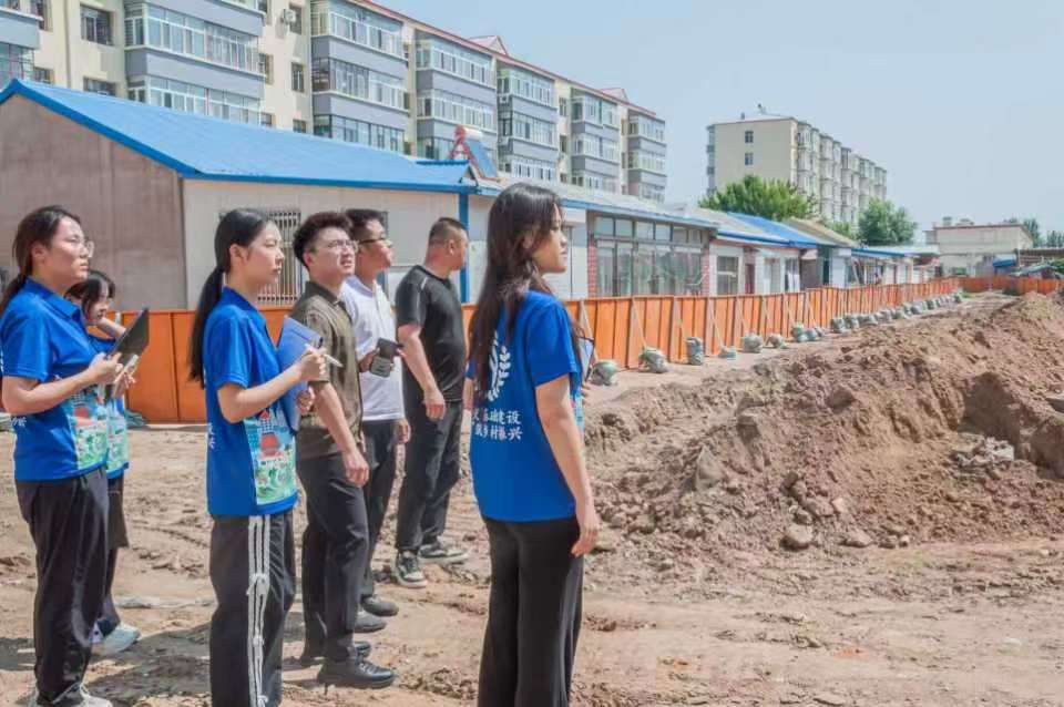 調(diào)研中,團(tuán)隊(duì)成員與施工單位負(fù)責(zé)人、一線作業(yè)人員深度交流。施工方詳細(xì)介紹工程進(jìn)展、節(jié)點(diǎn)完成情況及后續(xù)部署,團(tuán)隊(duì)結(jié)合專業(yè)理論就“管道排水量與改造后綠化適配性”等技術(shù)方案提出疑問,施工人員逐一專業(yè)解答。通過系統(tǒng)梳理分析現(xiàn)場(chǎng)信息,為后續(xù)提出建設(shè)性解決方案奠定基礎(chǔ),助力改造工程高效推進(jìn),為鄉(xiāng)村振興注入基建動(dòng)能。歷史長河奔涌向前,時(shí)代考題常答常新。黨的二十大擘畫了以中國式現(xiàn)代化推進(jìn)民族復(fù)興的宏偉藍(lán)圖,農(nóng)村作為現(xiàn)代化建設(shè)的主戰(zhàn)場(chǎng),任務(wù)艱巨繁重。實(shí)踐團(tuán)隊(duì)成員將銘記此次經(jīng)歷,在實(shí)踐中深讀“國情之書”“基層之書”“群眾之書”,持續(xù)提升專業(yè)本領(lǐng),以技術(shù)賦能基層發(fā)展,用實(shí)干答好鄉(xiāng)村振興的“時(shí)代考卷”。
