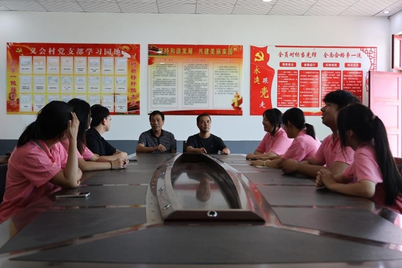 隨后,在與村黨支部的座談會上,村支書向團(tuán)隊(duì)介紹了當(dāng)?shù)靥O果產(chǎn)業(yè)發(fā)展現(xiàn)狀和面臨的挑戰(zhàn)。他提到:“像村里一些位于偏遠(yuǎn)山梁、道路崎嶇的小果園,大型機(jī)械根本進(jìn)不去,只能靠人力。這些果農(nóng)守著豐收的果園,卻常常力不從心。”對此,團(tuán)隊(duì)隊(duì)長王心怡現(xiàn)場回應(yīng):“支書,帶我們?nèi)ツ切┕麍@!我們來想辦法。”學(xué)生們決定調(diào)整行程,翻越山梁,為困難家庭提供人力支援?紤]到地形的復(fù)雜性,團(tuán)隊(duì)攜帶了輕便折疊采摘器等“半自動化”輔助工具。