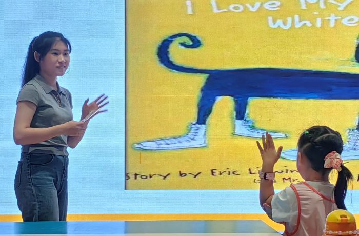 上臺展示時,小男孩舉著畫紙,用稚嫩的英語說“dog…”,盡管語序不準,臺下仍響起熱烈掌聲。“以前覺得教英語就是背單詞,”團隊里一位外國語學院學生坦言,“現(xiàn)在才發(fā)現(xiàn),語言和想象力碰撞,會生出這么多驚喜。”這場充滿童趣的活動,背后是跨專業(yè)團隊的精密協(xié)作。外語專業(yè)學生篩選出10余本適合低齡兒童的繪本,確保單詞簡單、故事溫暖;設計專業(yè)同學手繪角色卡片,讓小熊、小兔“跳出”書頁;教育專業(yè)成員按兒童注意力規(guī)律,將活動拆分為“故事共—單詞互動—創(chuàng)意創(chuàng)作—分享展示”四步,每一步都緊扣孩子興趣。