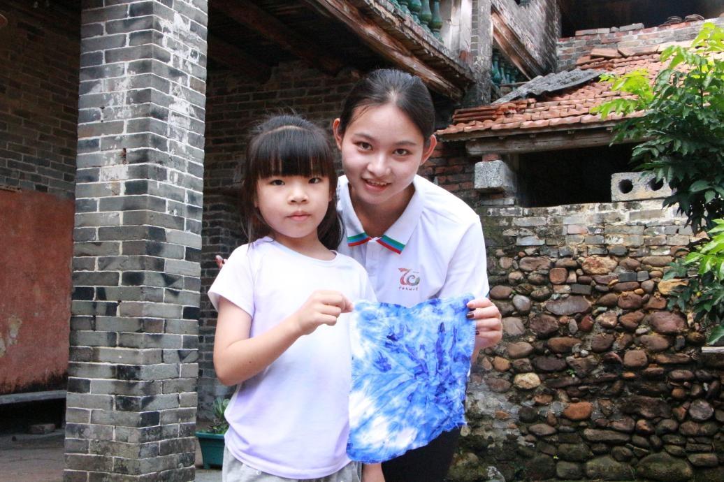 扎染漆扇制作,傳統(tǒng)工藝?yán)啻夯?dòng)。隊(duì)員們與小朋友們共同探尋扎染技法的奧秘,折出詩(shī)意褶皺,捆扎奇妙形態(tài),浸入染料的瞬間,看素白絹布暈染開斑斕云霞。小朋友們的作品,或帶著稚氣拙樸,或藏著意外驚喜。隊(duì)員們?cè)诮淌诩妓嚂r(shí),把現(xiàn)代勞動(dòng)理念里的文化傳承觀,悄悄種進(jìn)他們心里;也從孩子們不受拘束的創(chuàng)作里,看到傳統(tǒng)工藝煥新的活力。這場(chǎng)互動(dòng),讓勞動(dòng)教育掙脫枯燥說教的枷鎖,成為基層教育資源中鮮活的文化傳承課,牽著小朋友們的手,在藝術(shù)勞動(dòng)的花園里,向著成長(zhǎng)深深扎根。