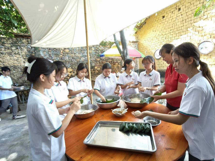 鄉(xiāng)音里嘮著家常,笑意中美食飄香。蕉葉粑粑包餡、裹葉、蒸煮以及涼粉的制作,讓實(shí)踐團(tuán)學(xué)習(xí)傳統(tǒng)技藝,汲取鄉(xiāng)土飲食文化養(yǎng)分,也為鄉(xiāng)土美食的文化傳承注入新活力。