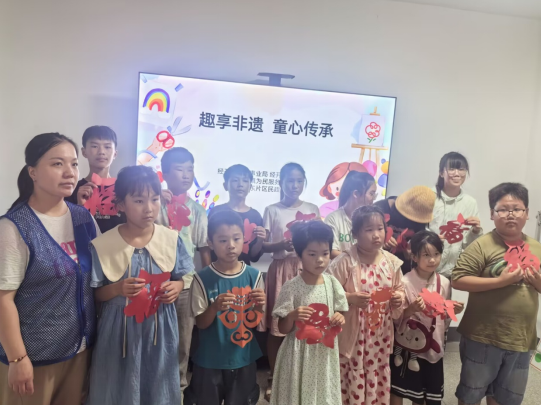 互動里,隊員們發(fā)現(xiàn)孩子對“連年有余”圖案好奇,便結(jié)合諧音故事講解,當聽到“魚”代表“富余”,9歲的曉萱眼睛發(fā)亮:“我要剪魚送給奶奶,希望奶奶的菜籃子永遠裝滿!”簡單對話串聯(lián)起文化寓意與生活情感,讓非遺不再是遙遠的“老物件”,而成了孩子們表達愛的載體。