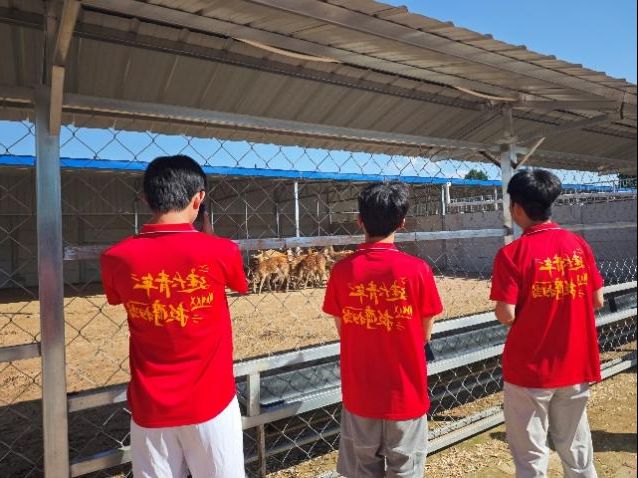 圖為實踐團成員參觀梅花鹿養(yǎng)殖基地