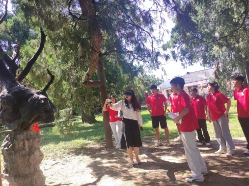 上午10點,驕陽似火,但這絲毫沒有削減實踐團隊的熱情。他們與田莊鎮(zhèn)鎮(zhèn)長李凡順利進行了對接。鎮(zhèn)長李凡面帶親切的笑容,熱情地迎接了這支充滿朝氣的實踐團隊。他用誠摯而生動的語言,詳細地為實踐團隊講述了當(dāng)?shù)氐陌l(fā)展現(xiàn)狀。從農(nóng)業(yè)的傳統(tǒng)模式到現(xiàn)代化的探索,從基礎(chǔ)設(shè)施的建設(shè)到未來的規(guī)劃藍圖,鎮(zhèn)長的講述猶如一幅生動的畫卷,在實踐團隊成員的眼前徐徐展開。隨后,鎮(zhèn)長親自帶領(lǐng)實踐團隊參觀了聞名遐邇的七星柏。七星柏屹立在這片土地上,見證了歲月的變遷,仿佛在默默訴說著田莊鎮(zhèn)的歷史與故事。