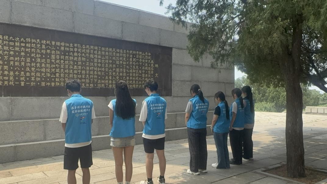 泰安烈士陵園的松柏在風(fēng)中低語,實(shí)踐團(tuán)成員緩步走過烈士紀(jì)念碑。隊(duì)員劉書軒在烈士名錄前駐足,指尖撫過石碑上模糊的字跡:“他和我們年紀(jì)相仿,卻用生命換來了今天的和平。”